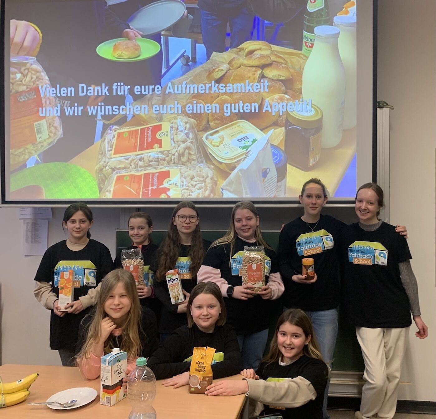Zunächst informierten Schülerinnen des Fairtrade-Teams in den Klassen über die Herkunft der Produkte und die Grundsätze des Fairen Handels, darunter faire Bezahlung, keine ausbeuterische Kinderarbeit und gute Arbeitsbedingungen.