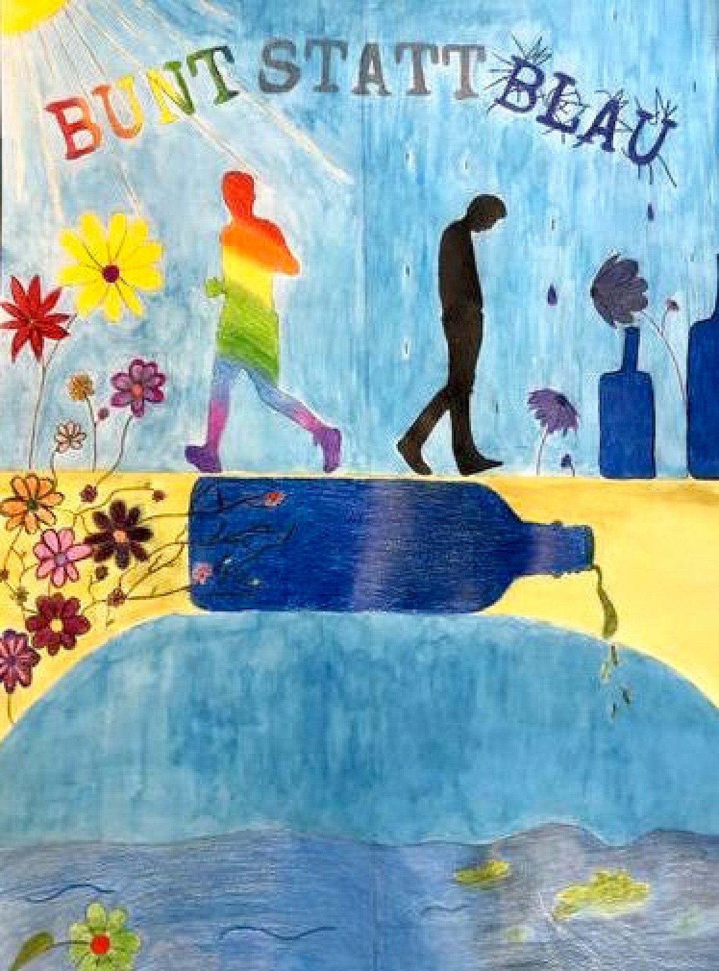 Dies ist der Titel des Plakatwettbewerbs gegen Alkoholkonsum und ‑missbrauch bei Kindern, Jugendlichen und Erwachsenen. Die Deutsche Angestellten Krankenkasse (DAK) veranstaltet diesen Wettbewerb seit 14 Jahren. Im Rahmen dieses Wettbewerbs zeigen unsere Schüler und Schülerinnen der Kunst-Grundkurse der Jahrgangstufe 10 (EP) ihre Arbeiten. Es wurden Einzelarbeiten und Gruppenarbeiten erstellt.