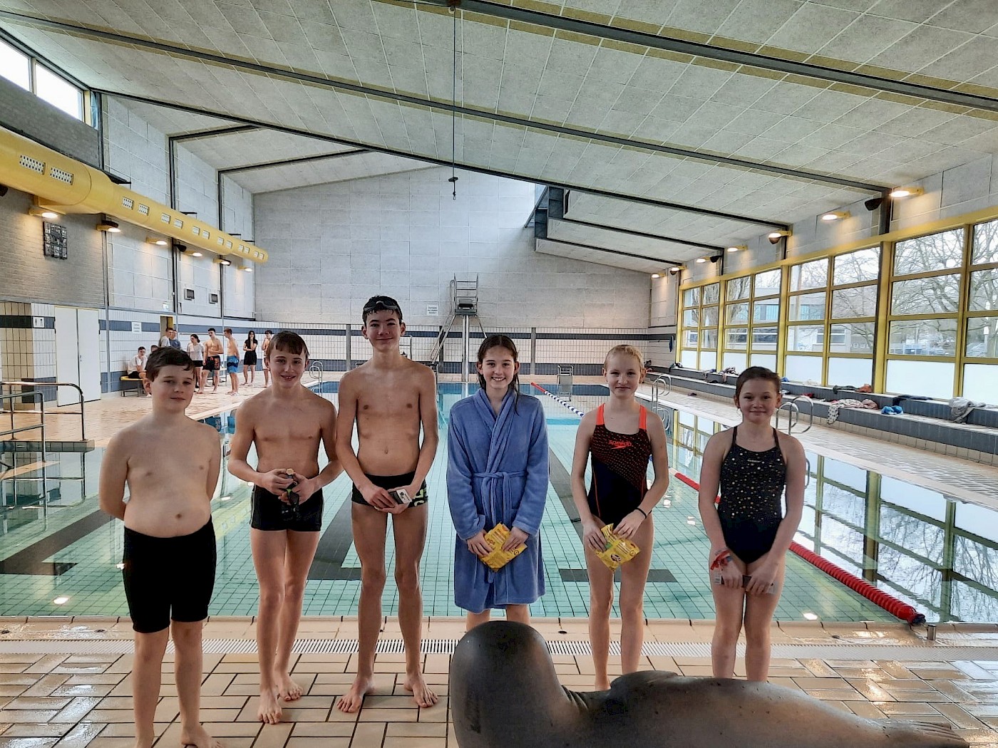 Am heutigen Montag fand das Schwimmfest der 6. Klassen statt. Die Schüler:innen kämpften zwar um Bestzeiten, hatten aber vor allem viel Spaß, sodass der Tag durchaus als Erfolg verbucht werden kann.